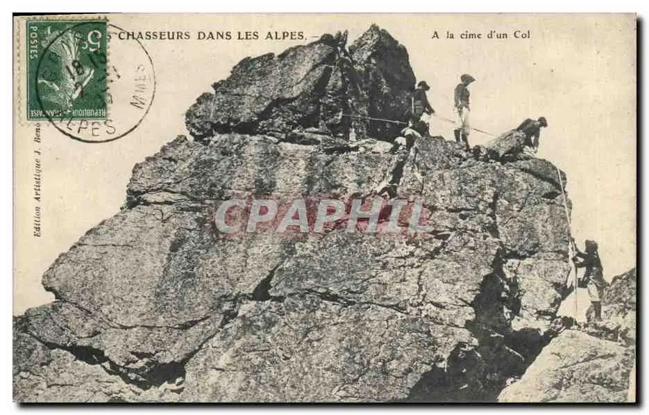 Cartes postales Militaria Chasseurs Alpins Alpes A la cime d'un col