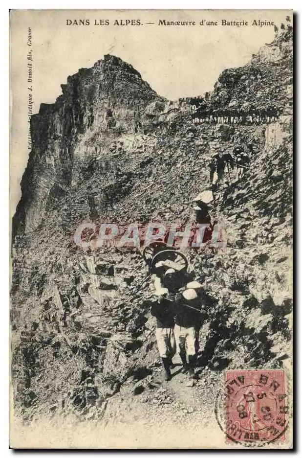 Cartes postales Militaria Chasseurs Alpins Dans les Alpes Manoeuvre d'une batterie alpine
