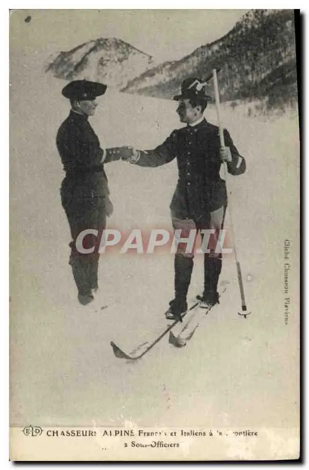 Cartes postales Militaria Chasseurs Alpins Francais et Italiens a la frontiere 2 sous officiers