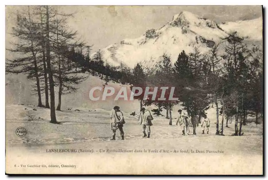 Cartes postales Militaria Chasseurs Alpins Lanslebourg Un ravitaillement dans la Foret d'Arc Au fond La dent