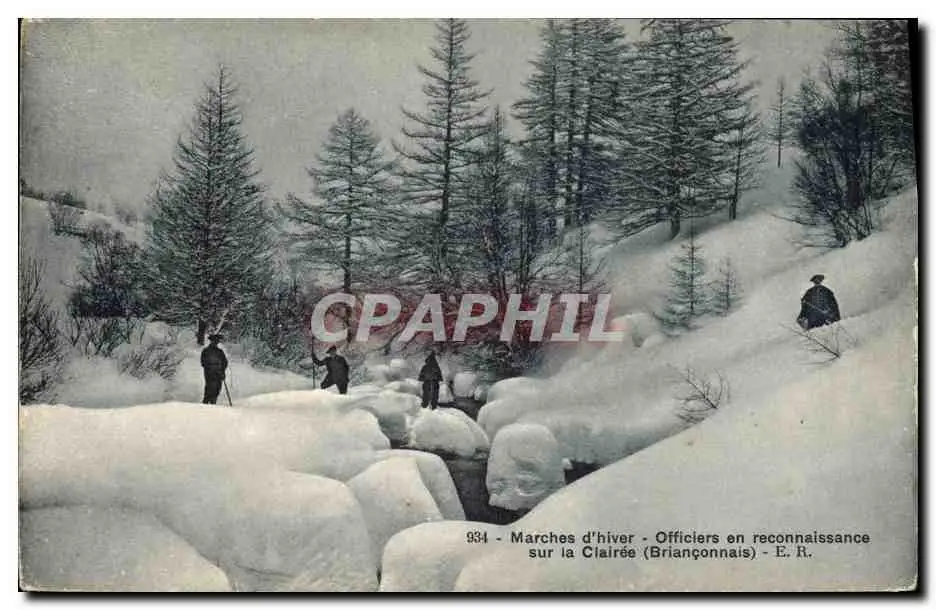 Cartes postales Militaria Chasseurs Alpins Marches d'hiver Officiers en reconnaissance sur la Chairee Brianco