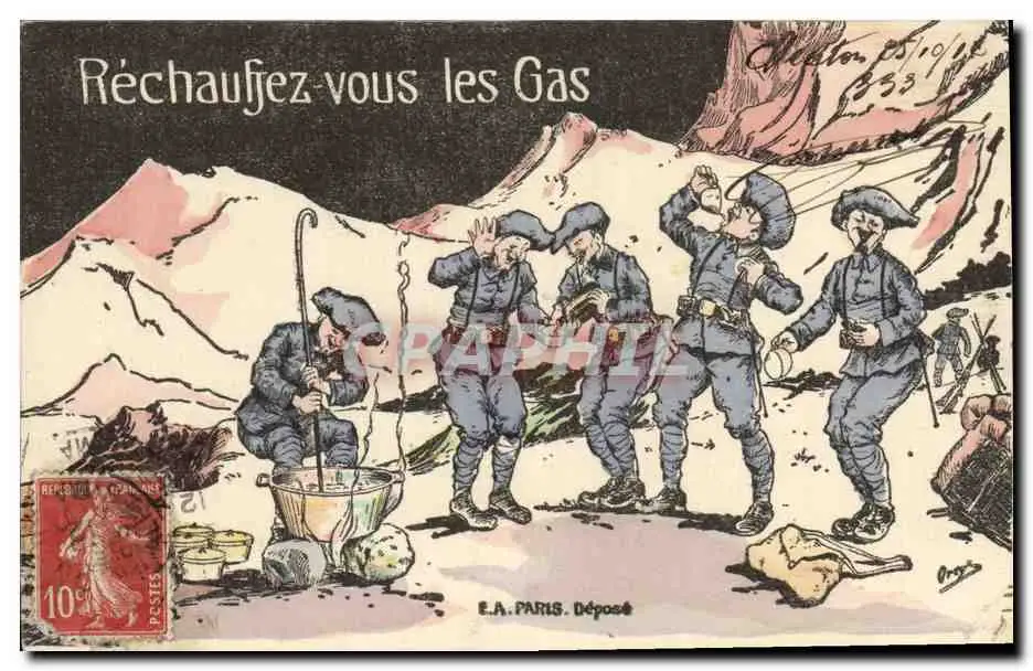 Cartes postales Militaria Chasseurs Alpins Rechauffez vous les Gas