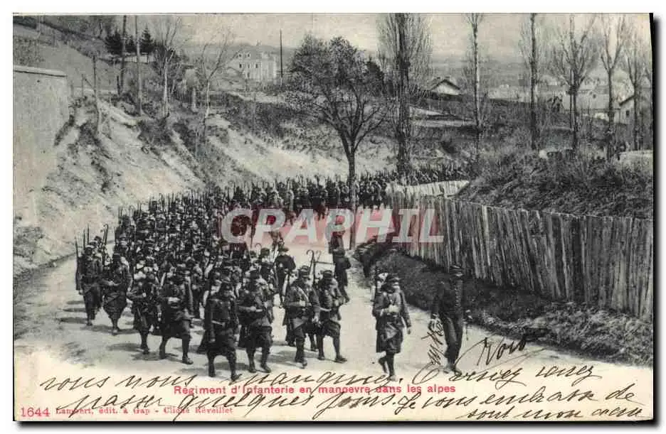 Cartes postales Militaria Chasseurs Alpins Regiment d&#39infanterie en manoeuvre dans les Alpes