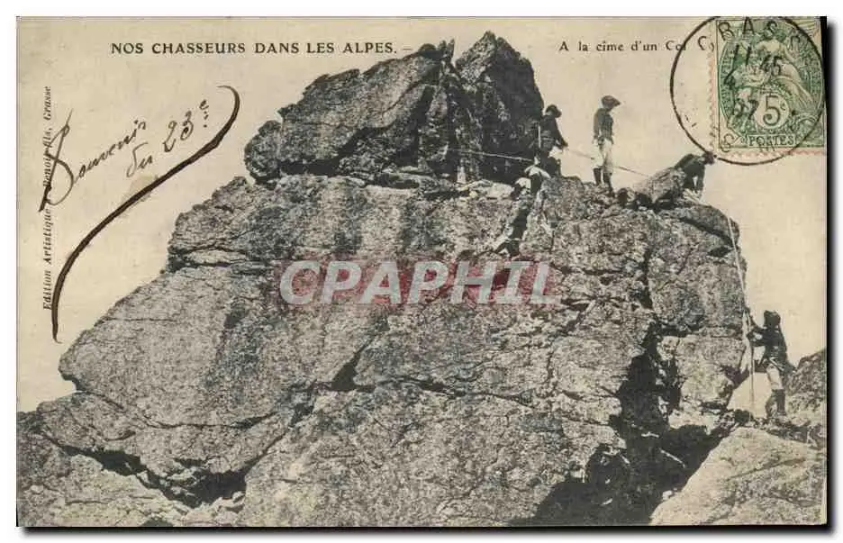 Cartes postales Militaria Chasseurs Alpins dans les Alpes A la cime d'un col