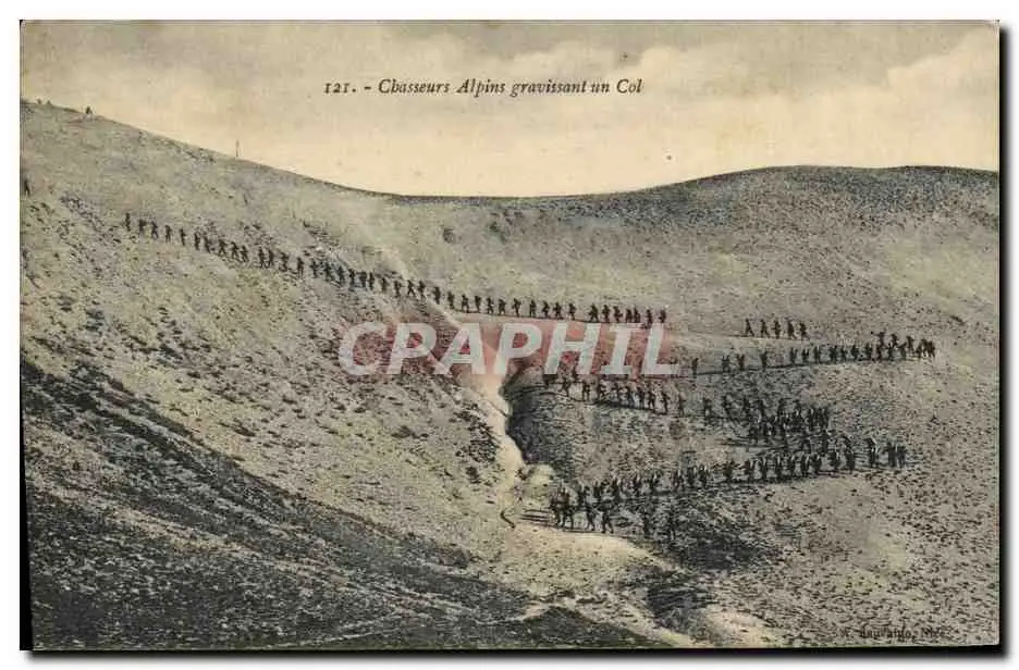 Cartes postales Militaria Chasseurs Alpins gravissant un col