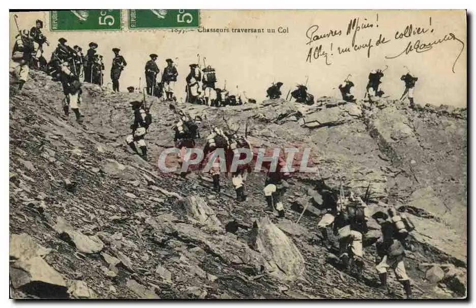 Cartes postales Militaria Chasseurs Alpins traversant un col