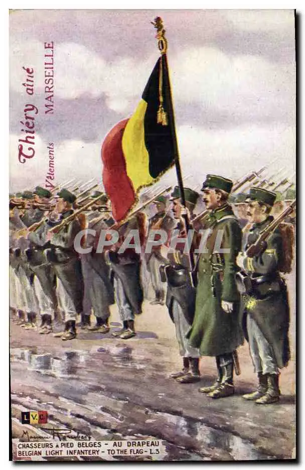 Cartes postales Militaria Chasseurs a pied belges Au drapeau