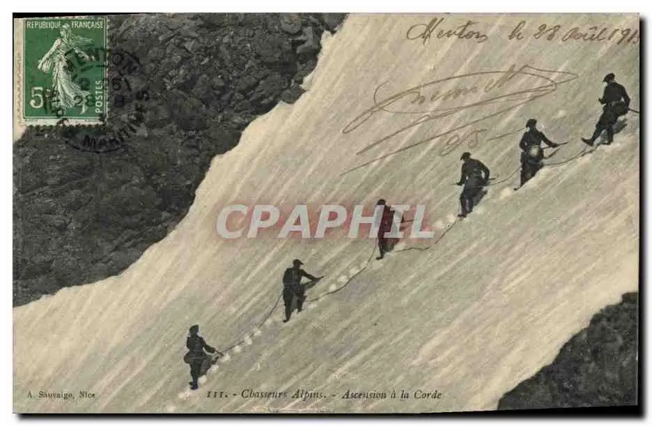 Cartes postales Militaria Chasseurs alpins Ascension a la corde