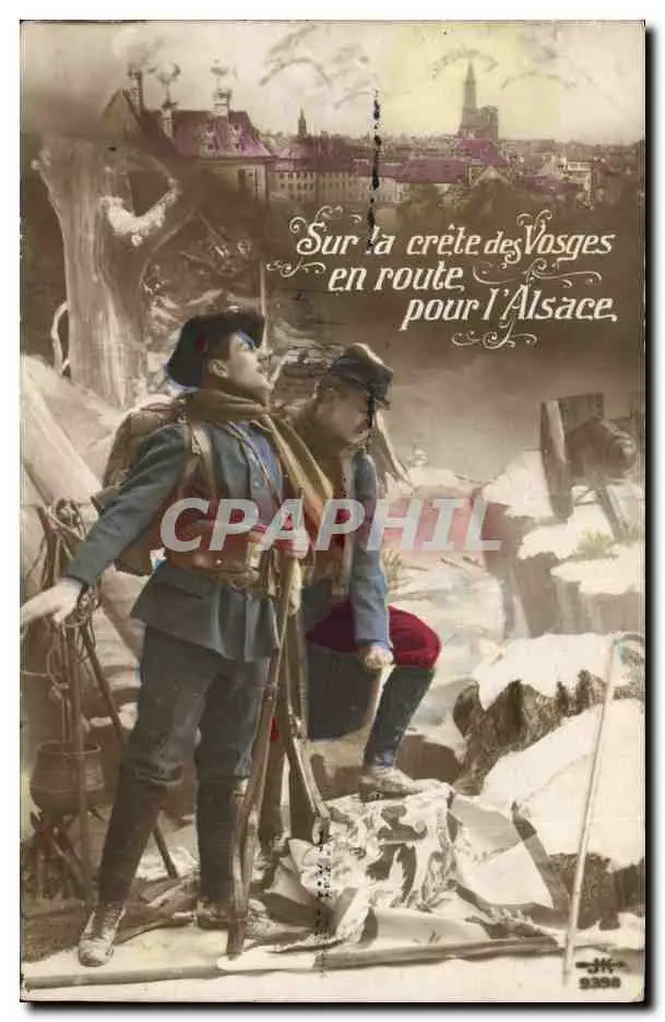 Cartes postales Militaria Chasseurs alpins Sur la crete des Vosges en route pour l'Alsace