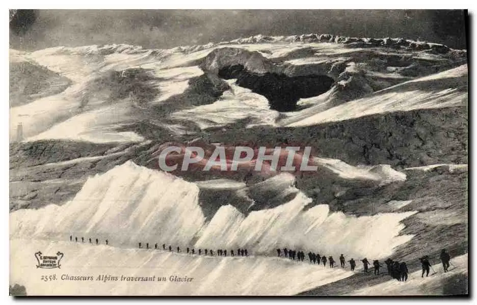 Cartes postales Militaria Chasseurs alpins traversant un glacier