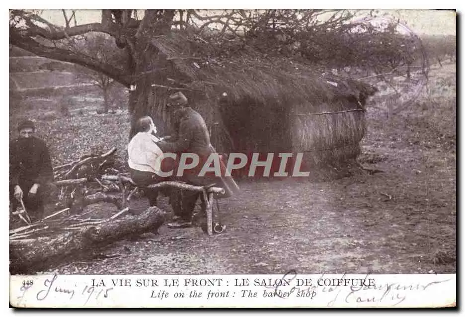 Cartes postales Militaria Coiffeur Perruquier La vie sur le front Le salon de coiffure