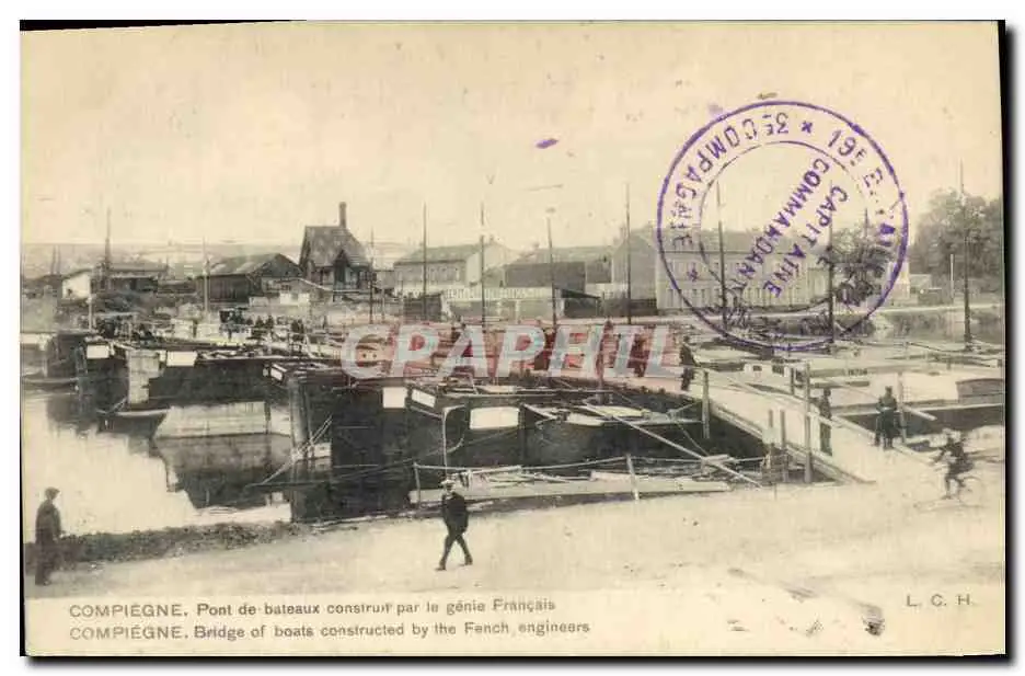 Cartes postales Militaria Compiegne Pont de bateaux construit par le genie francais