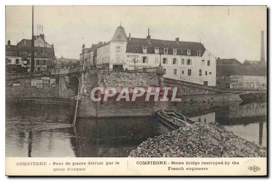 Cartes postales Militaria Compiegne Pont de pierre detruit par le genie francais