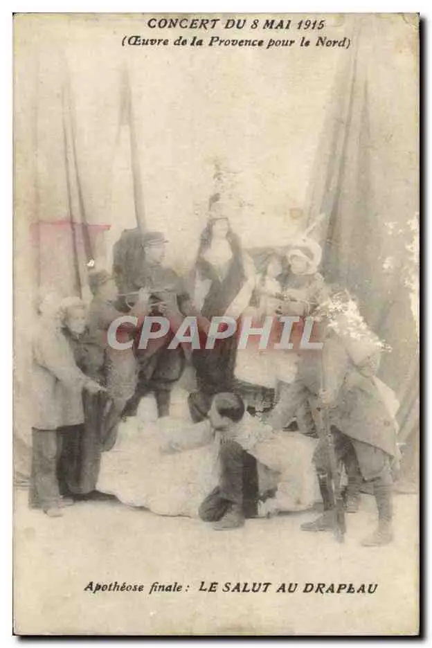 Cartes postales Militaria Concert du 8 mai 1915 Oeuvre de la Provence pour le Nord Le salut au drapeau