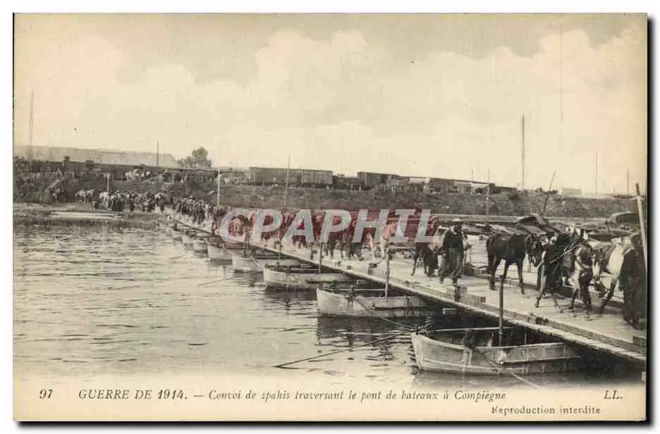 Cartes postales Militaria Convoi de Spahis traversant le pont de bateaux a Compiegne