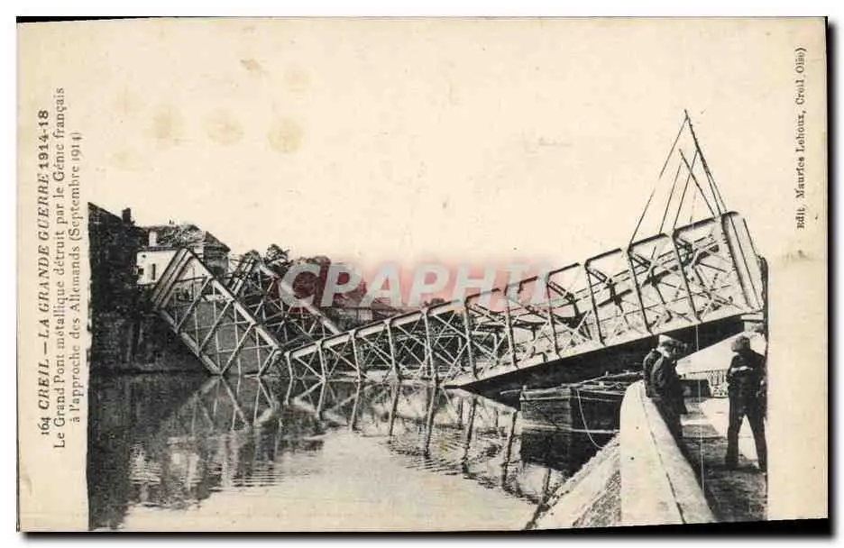 Cartes postales Militaria Creil Le grand pont metallique detruit par le Genie Francais a l'approche des Allem