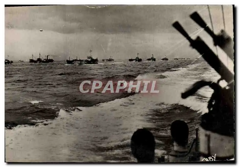 Cartes postales Militaria Debarquement en Normandie Les batiments de la Royale escortent les unites de debarquem