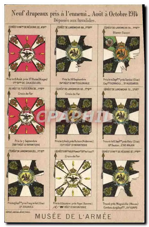 Cartes postales Militaria Drapeaux allemands Paris Musee de l&#39armee