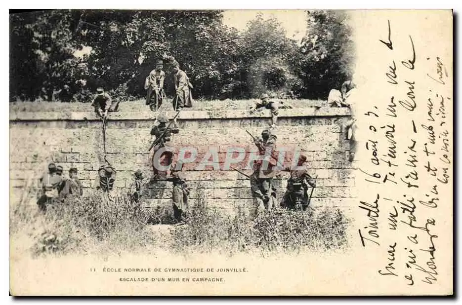 Cartes postales Militaria Ecole Normale de Gymnastique de Joinville Escalade d'un mur en campagne