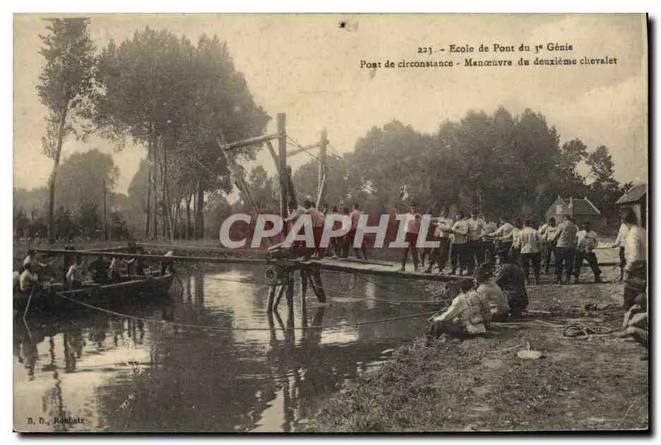 Cartes postales Militaria Ecole de pont du 3eme Genie Pont de circonstance Manoeuvre de deuxieme Chevalet