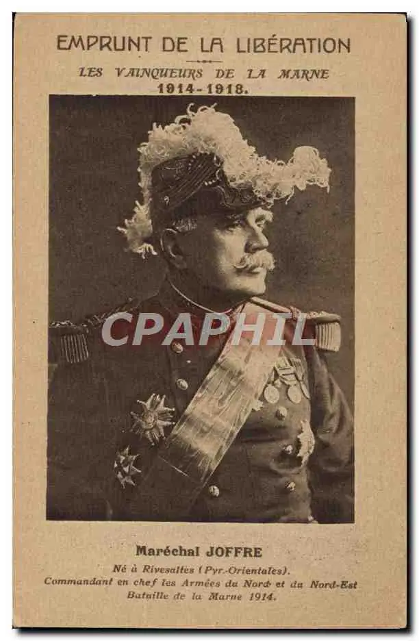 Cartes postales Militaria Emprunt de la Liberation Vainqueurs de la Marne Marechal Joffre