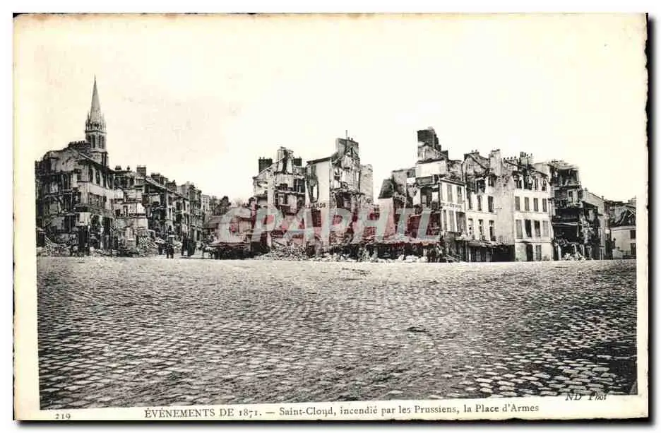 Cartes postales Militaria Evenements de 1871 Saint Cloud incendie par les Prussiens Place d'armes