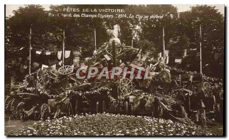 Cartes postales Militaria Fetes de la Victoire Rond point des Champs Elysees Le coq se defend