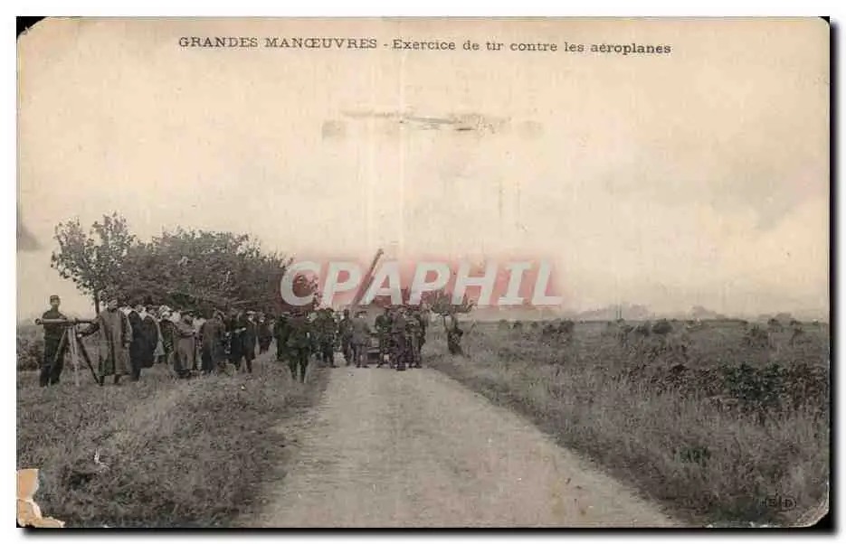 Cartes postales Militaria Grandes manoeuvres Exercice de tir contre les aeroplanes