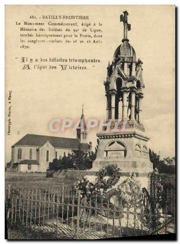 Cartes postales Militaria Guerre de de 1870 Batilly Frontiere Le monument commemoratif