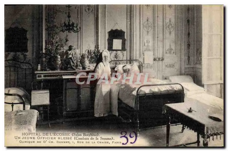 Cartes postales Militaria Hopital de l'Ecosse Un jeune officier blesse Combats de la Somme Bonnet Rue de la C