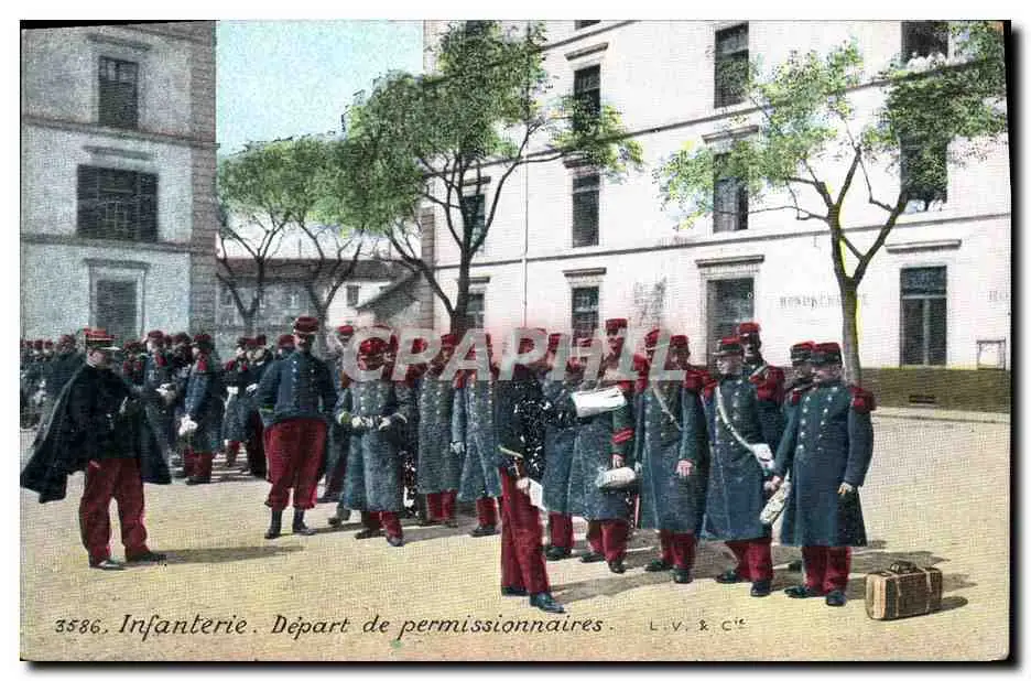 Cartes postales Militaria Infanterie Depart des permissionnaires