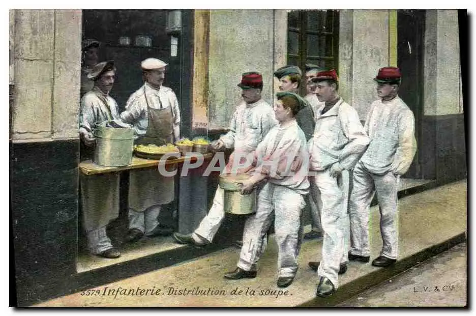 Cartes postales Militaria Infanterie Distribution de la soupe