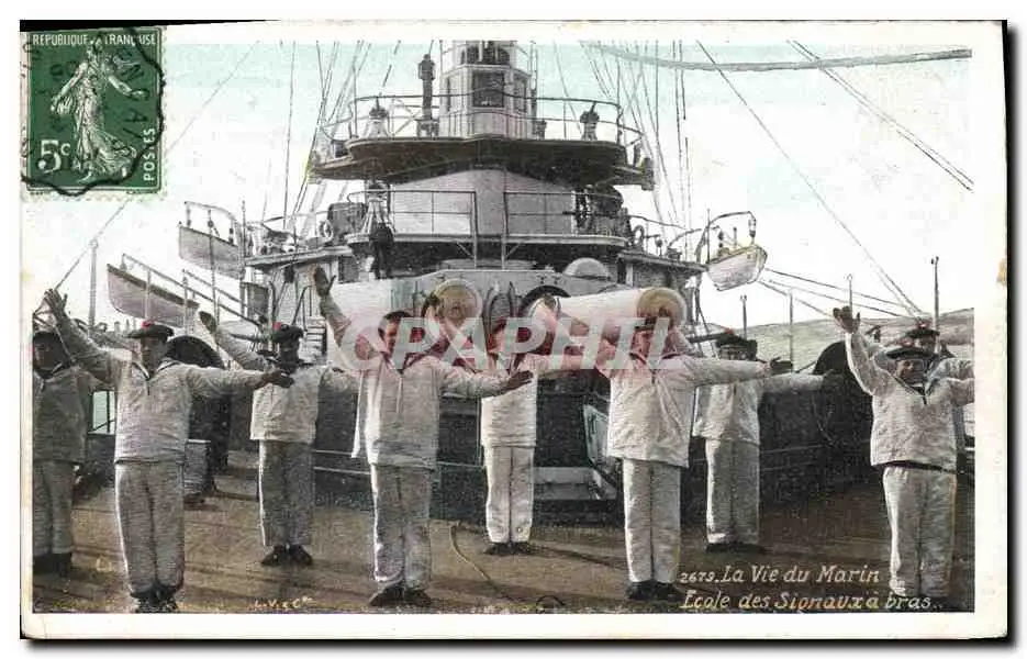 Cartes postales Militaria La vie du Marin Ecole des signaux a bras