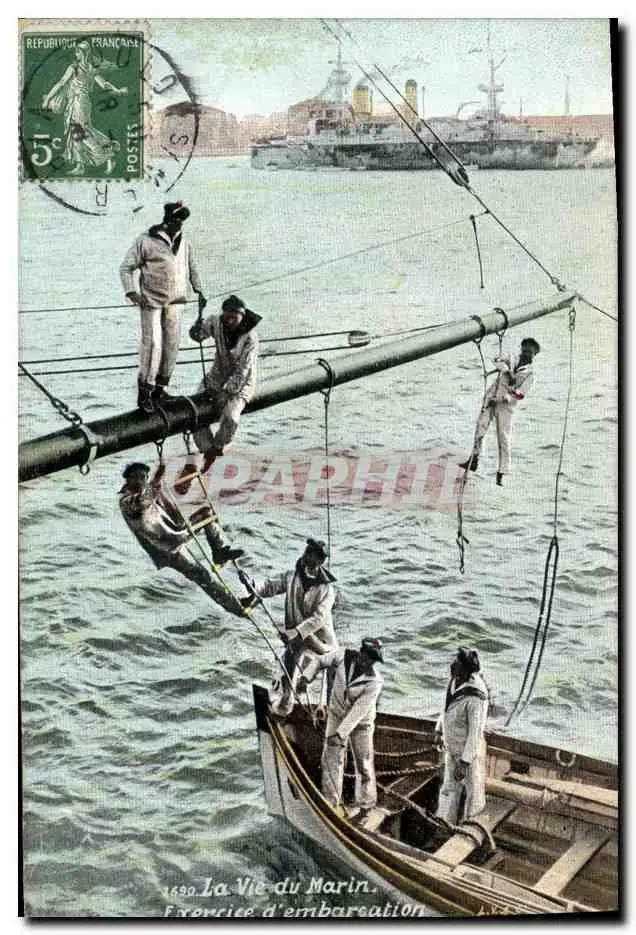 Cartes postales Militaria La vie du marin Exercice d'embarcation