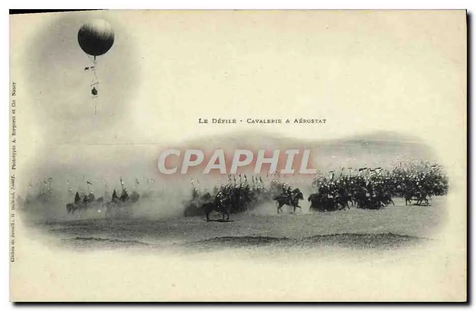 Cartes postales Militaria Le defile Cavalerie et aerostat TOP