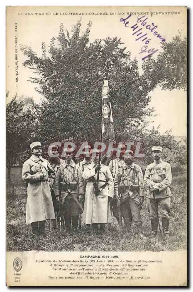 Cartes postales Militaria Le drapeau et le lieutenant colonel du 350eme regiment d'infanterie