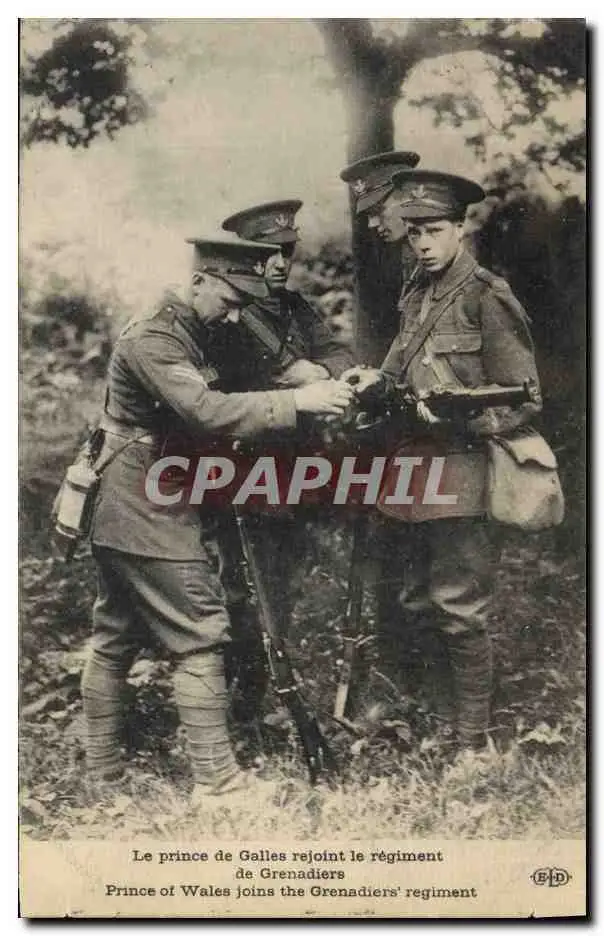 Cartes postales Militaria Le prince de Galles rejoint le regiment de Grenadiers