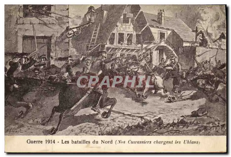 Cartes postales Militaria Les batailles du Nord Nos cuirassiers chargent les Uhlans