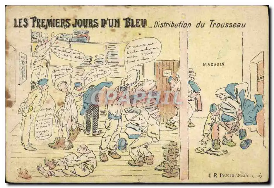 Cartes postales Militaria Les premiers jours d'un bleu Distribution du trousseau
