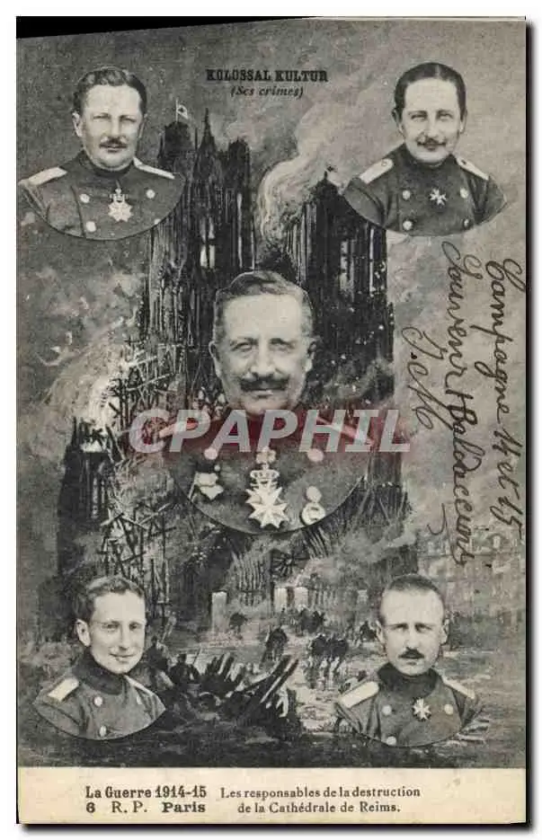 Cartes postales Militaria Les responsables de la destruction de la cathedrale de Reims