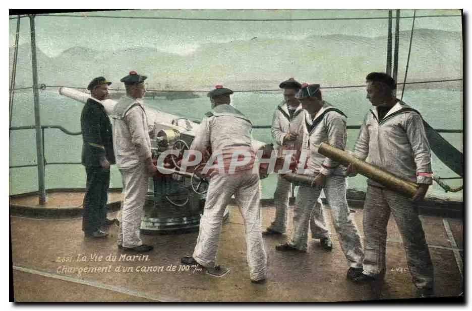 Cartes postales Militaria Marins La vie du marin Chargement d'un canon de 100 mm