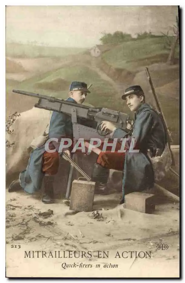 Cartes postales Militaria Mitrailleurs En Action Soldats cachet 19eme rgt d&#39infanterie 1er bataillon 3eme Cie