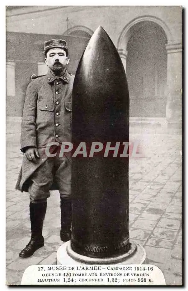 Cartes postales Militaria Musee de l armee Paris Campagne 1914 1916 Obus de 420 tombe aux environs de VErdun