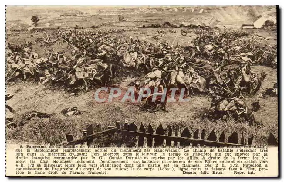 Cartes postales Militaria Panorama de la bataille de Waterloo Napoleon
