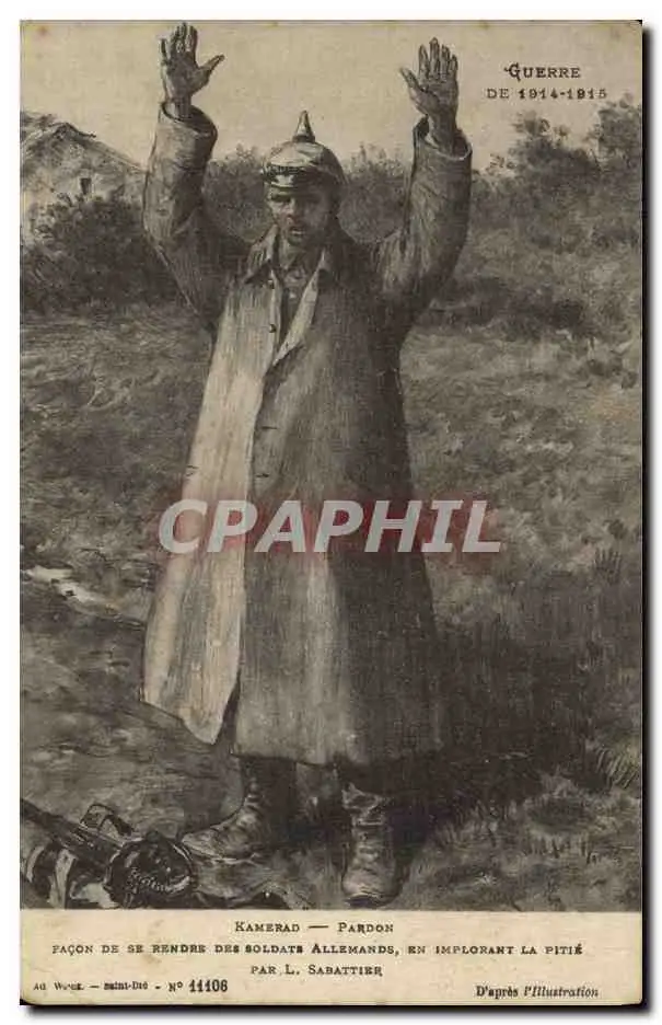 Cartes postales Militaria Pardon Facon de se rendre des soldats allemands en implorant la pitie