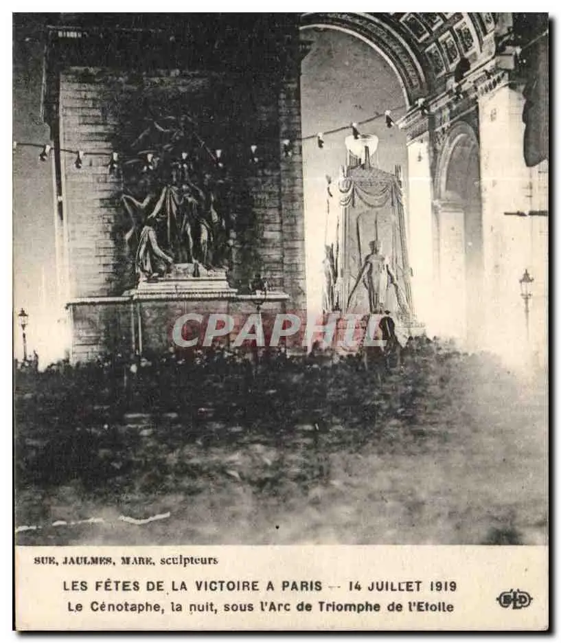 Cartes postales Militaria Paris 14 juillet 1919 Le Cenotaphe La nuit sous l arc de Triomphe