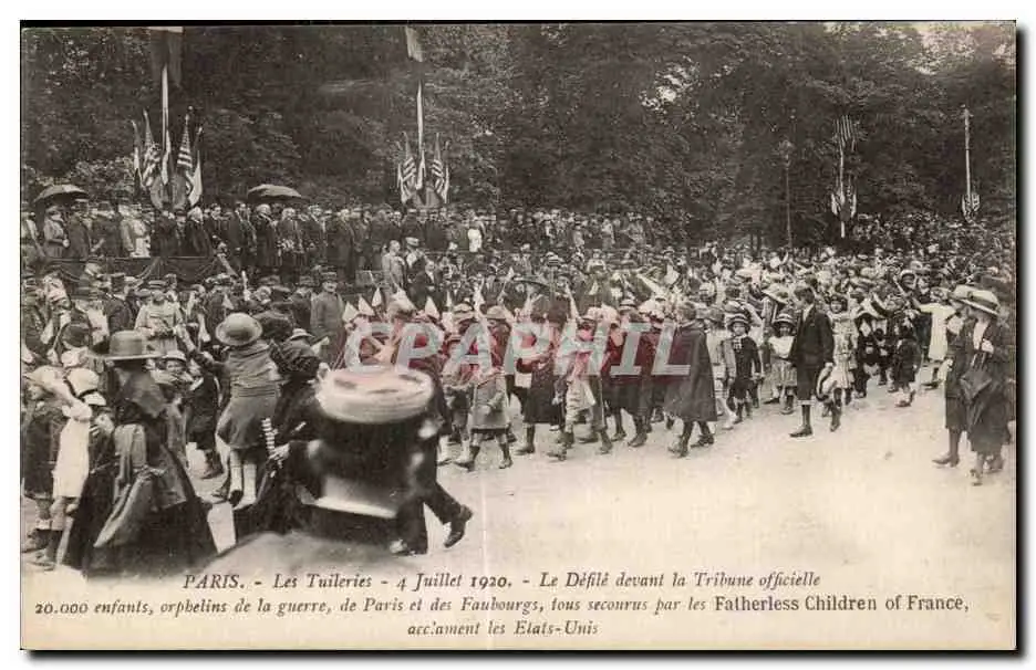 Cartes postales Militaria Paris 1920 Les Tuileries 4 juillet 1920 Le defile devant la tribune officielle