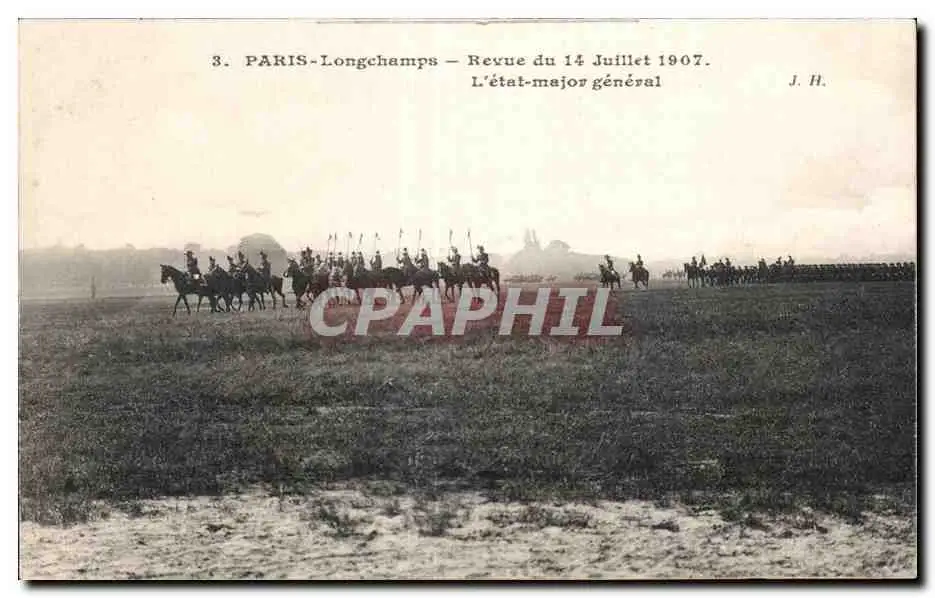 Cartes postales Militaria Paris Longchamps REvue du 14 juillet 1907 L etat major general
