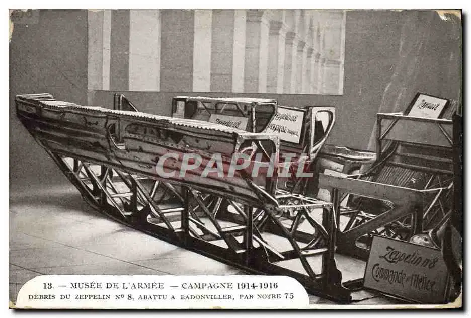 Cartes postales Militaria Paris Musee de l&#39armee Debris du zeppelin n�8 abattu a Badonviller