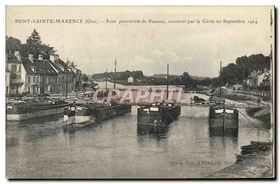 Cartes postales Militaria Pont Sainte Maxence Pont provisoire de bateaux construit par le Genie en septembre 191
